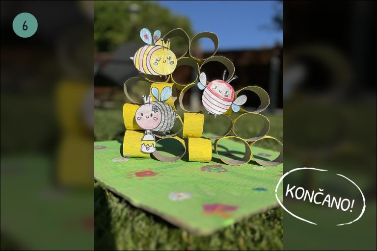 6.) Ko je naš panj suh, nalepimo čebelice na posamezne krogce.