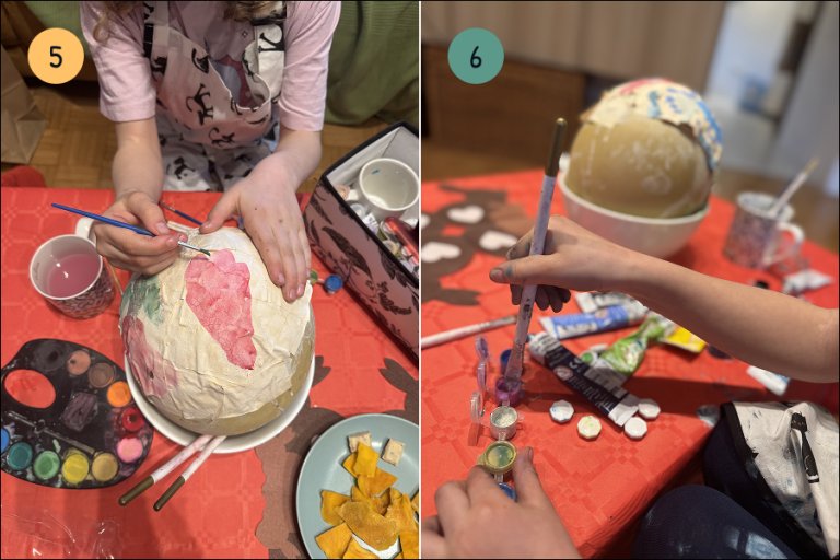 6.) Pusti, da se posuši: balon z nalepljenim papirjem pusti, da se dobro posuši. To traja en dan.